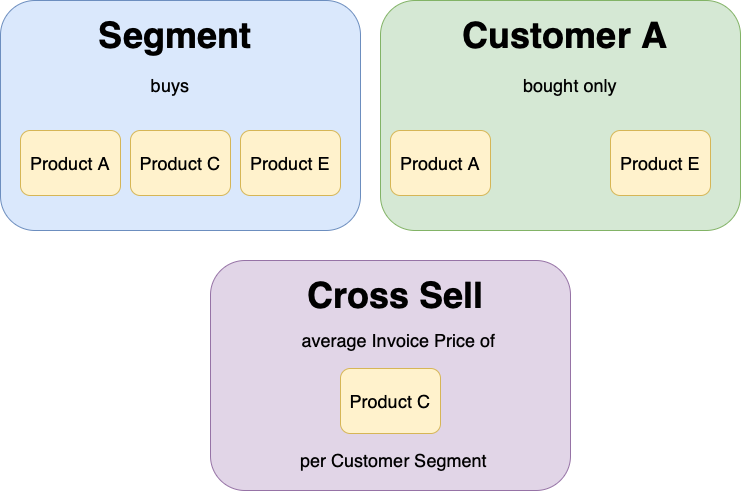 Cross Sell Opportunity refers to the potential for selling products that have not yet been purchased by a particular customer, based on the purchasing behavior of customers within the same market segment.